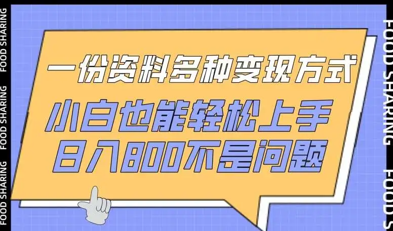 一份资料多种变现方式,小白也能轻松上手,日入800不是问题【揭秘】 课程包含: 项目介绍 前期准备 项目实操 变现方式 作者声明:本教程仅用于技术交流及学习,请勿使用本教程所讲技术进行违法活动,如果将本教程所讲技术用于违法活动,本人概不负责。项目中有不懂的问题及时咨询!