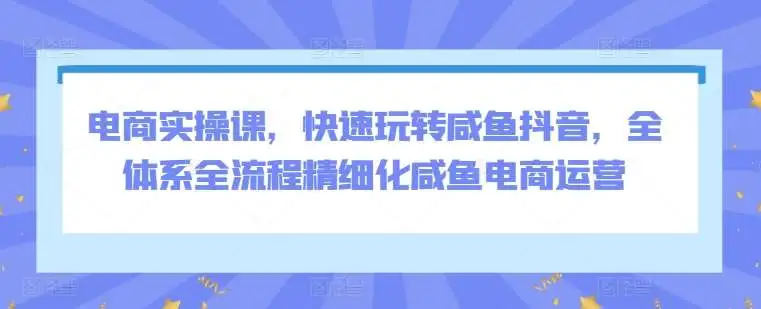 电商实操课,快速玩转咸鱼抖音,全体系全流程精细化咸鱼电商运营